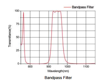 带通滤光片将部分光谱进行透射,同时截止其他波长,可以消除光信号中不必要的背景噪声, 增强了信噪比。带通玻璃最大透射比的一半所对应的波长λ1 和λ2 之差(λ2-λ1)nm 称为半宽 度。光谱特性由透射比的最大值(TM)及其波长(λM)位置,短波截止波长,长波截止波长和半宽 度来表示。高求光电生产的带通滤光片具有过渡区窄,透射带透射率大,截止带截止度深的特 点,能够满足客户应用需求。